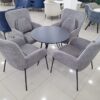 الكراسي مكسوة بقماش ناعم ومتوفرة بأربعة ألوان جذابة (الرمادي، الأزرق الداكن، واللون البيج) لتناسب مختلف الأذواق والديكورات.